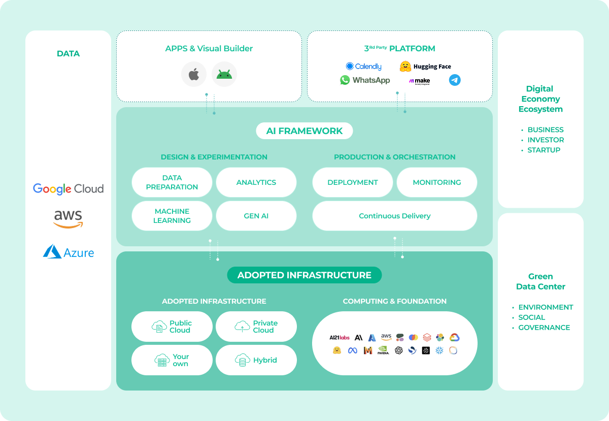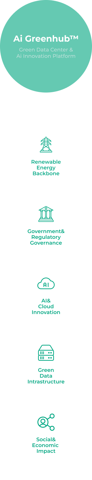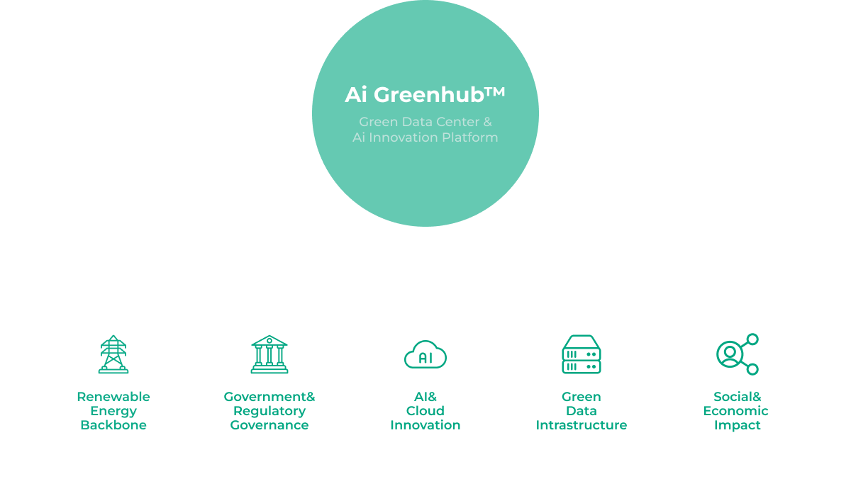 Ainocean's Ai hub connects digital economy ecosystems and environmental, social, and governance (ESG) through its sustainable data centers, driving integrated business development, support, and investment.